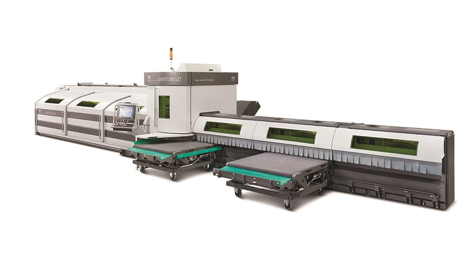 BLM GROUP USA announced the availability of the LT7F2 lasertube featuring a 2D cutting head, for fabricators processing round tubes, square, rectangle, and open profiles or special sections requiring straight vertical-type cutting. The machine offers a 3D cutting head. The LT7F2 is capable of handling tubes from 0.5” to 6”, and up to 15.4 lbs./ft., and is available with either a 3 kW or 4kW fiber laser.