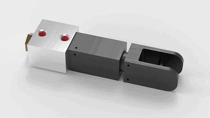 The design includes a mounting block that allows for installation on standard ARINC 404 trays while maximizing the adjustment range of the keeper.