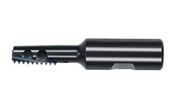 The spiral fluted toolholders, with internal coolant bore, hold from 1-to-3 inserts and are available in comparably small cutting diameters. The spiral design reduces vibrations and chatter, resulting in a high-quality surface finish.