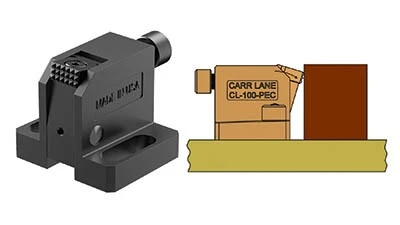 St. Louis, Missouri – A pivoting edge clamp suited for holding large castings and other tall workpieces converts easily from manual to hydraulic operation. The pivoting jaw exerts clamping force forward and downward at the same time. The jaw has a replaceable serrated gripper made of hardened tool steel for high-production durability. The slotted base provides adjustability and has a tapered top surface to prevent the clamp from moving.
