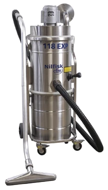The Nilfisk CFM 118/50EXP is designed for the collection of dry dust and debris that often accumulates on floors and overhead areas in manufacturing facilities. This single-phase, electric vacuum cleaner is CSA-certified explosion-proof / dust ignition-proof for use in Class I, Group D, and Class II, Groups E, F, and G environments.
