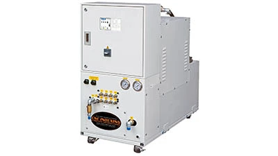 The HPC-2000, CNC Indexing’s largest standard high-pressure coolant system, employs oil- based coolant only and is for CNC Swiss lathe machine tool applications. The system’s 6gpm, 10hp gear pump is adjustable from 75psi to 2000psi, and the unit features an on-board transfer pump, 37-gallon reservoir tank, 8 port outlets, and an oil chiller.