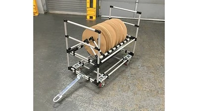 Greer, South Carolina – Some of the more difficult products to handle in a production environment are reels and spools of wire and hose. They’re cumbersome, usually big and are definitely awkward. Creform has designed a cart specifically to hold reels and spools for delivery to the production floor, as well as being used for lineside storage for part replenishment.