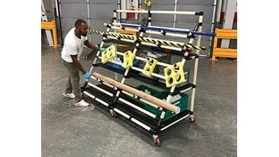 A wide variety of pipe color options are available and upgrade hitches are available for AGV or tugger delivery. Accessories include hooks, label holders for shelf levels or even shelf positions, pockets for paperwork, writing surface with clip boards just to name a few. Creform carts are available as a kit, assembled structure or in component form for a complete DIY solution.