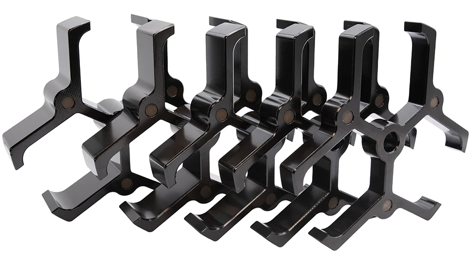 Dillon Manufacturing workpiece stops provide a quick, consistent method of locating short workpieces in 3-jaw chucks, thus speeding set-up times, and enhancing safety when machining short components. They allow short parts to be set above the jaws, thus providing needed clearance. Strong magnets pressed into the Stops hold them securely to the chuck face, which contrasts with parallels or spacers that can come loose and be thrown. In addition to providing a safer workspace, Dillon Workpiece Stops allow quick set-up times saving time and money. They are available in heights from .563" to 1.375", making them ideal for anyone machining short parts with 3-jaw chucks. Dillon Manufacturing stocks the full lineup of Workpiece Stops as well as other accessories including jaw boring rings, jaw force gages, grease, vise jaws, jaw nuts and keyways, and more in their Springfield, Ohio factory.
