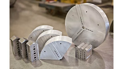 Springfield, Ohio – Dillon’s line of air chuck jaws now includes Style M and Style R– such as those often machined using air chucks. CNC machined for accuracy, the pins serve as a locator and allow precise repeatability plus fast installation. Available as blank top jaws in 1018 steel or 6061 aluminum, or pie shaped jaws using A360 or 6061 aluminum, plus 1018 steel, they are for all types of air chucks including Kitagawa, Northfield, and Microcentric brands.