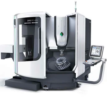 The distinctive features of the DMU 60 eVo include a revolutionary gantry design for highest rigidity and precision, improved swivel rotary table, space saving design and optional linear motor drive.