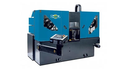 The DoALL DS-400CNC StructurALL dual-miter, CNC automatic, metal-cutting band saw (shown) is for fabricating shops, maintenance facilities, tool, and manufacturing plants. The DS-400CNC can also be classified as a horizontal structural, scissor-style miter-cutting saw. Hydraulically controlled, this CNC machine provides automatic indexing for multiple material feeds. With the easy-to-use controller, operators need only remove the material that has been cut. Designed for vertical and angular cuts, the DS-400CNC is adjustable to 45° left and right in semi-automatic mode.