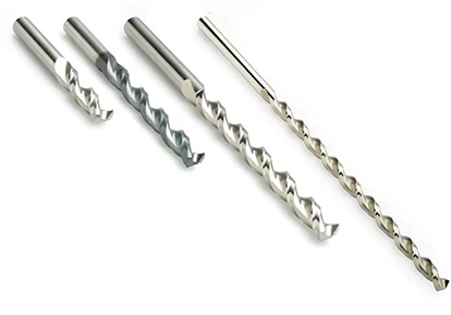 All drills feature a parabolic flute design for increased chip space and improved chip evacuation capabilities. This design allows greater hole depths to be achieved in some cases without the need for pecking. A thick web increases the structural strength of the drill for greater rigidity and minimizes the risk of drill breakage. In addition, the special point geometry promotes excellent centering - eliminating the requirement for a pilot hole - and reduces thrust force and power requirements.