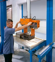 The Shuttle XP Vertical Lift Module (VLM) delivers parts directly to the operator at an ergonomic height with the push of a button. It is simply two large sections of racking with an extractor that runs up the center to store trays in the racking and deliver them to an access opening at the operators request. With a maximum tray capacity of 1,598 pounds-per-tray, the Shuttle VLM manages all inventory within the machine, eliminating wasted time walking through shelves searching for necessary parts.