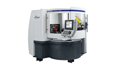 With a direct drive spindle, the latest linear motor technology and five CNC axes, the Compact Line can grind all indexable inserts, including carbide, CBN and PCD. What’s more, it can do that unmanned over several shifts thanks to an integrated 6-axis FANUC 200i-C robot and a “three-in-one” dressing, regeneration, and crushing unit that assures the grinding wheel is always perfect. The compact design and linear motors also minimize non-grinding times and ensure the shortest possible cycle times. The “plug and play” clamping systems enable quick changeover between insert types.