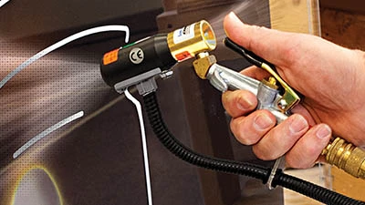 Cincinnati, Ohio – Exair’s Ion Air Gun removes static electricity, contaminants, and dust from parts prior to labeling, assembly, packaging, painting, or finishing. This engineered product has undergone independent laboratory tests to certify it meets the rigorous safety, health, and environmental standards of the USA, European Union, and Canada that are required to attain the CE and UL marks. It is also RoHS compliant. New design features include a metal armored high voltage cable to protect against abrasion and cuts, a replaceable emitter point, integrated ground connection, and electromagnetic shielding. The Ion Air Gun neutralizes static electricity and cleans at distances up to 15ft (4.6m).