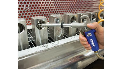 Since airflow is directed back toward the operator, personal protective equipment is recommended. Chip Shields to protect the operator from the exiting debris are available. Extension pipes from 12" to 72" are stocked to provide necessary reach for longer tube and pipe clean out. A variety of Safety Air Guns are available including the Precision, Heavy Duty, and VariBlast Compact Safety Air Gun.