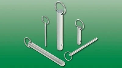 The detent pins are available in either C1144 steel with steel split rings or 303 stainless steel with 316 stainless rings. The steel pins and rings have a zinc-plated clear chromate finish. In both instances, the ball and spring are made from 316 stainless. The detent quick release pins are RoHS and DFARS compliant and made in the U.S.A. Wire rope lanyard assemblies are also available.