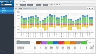 The Pro plan includes all of the features of the Light Plan along with auto part counting, OEE metrics, downtime event analytics, part production reports, program analytics, production category reports, and tool reports. It also includes text message alerts and a factory income statement function from Freedom’s e$CORE financial module. e$CORE translates the data collected into dollars and effectively monetizes gains and losses based on user-defined parameters.