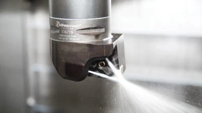 - Two high-pressure coolant nozzles precisely aimed at the cutting edge to aid in chip removal and improve tool life