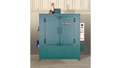 No. 1045 is a 1,250°F (677°C), high temperature horizontal air flow cabinet oven from Grieve, currently used for heat treating at the customer’s facility. Workspace dimensions of this oven measure 38" x 38" x 38". A 350,000 BTU/hr modulating natural gas burner provides heat, while a 2,000cfm, 2hp recirculating blower provides horizontal airflow.