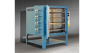 Round Lake, Illinois – No. 856 is a 500°F (260°C), special universal oven from Grieve, currently used for curing composite parts in vacuum bags at the customer’s facility. Workspace dimensions of this oven measure 42"W x 40"D x 50"H. Incoloy-sheathed tubular elements offer 48kW of heat, while a 4,200cfm, 3hp recirculating blower provides universal airflow to the workload.