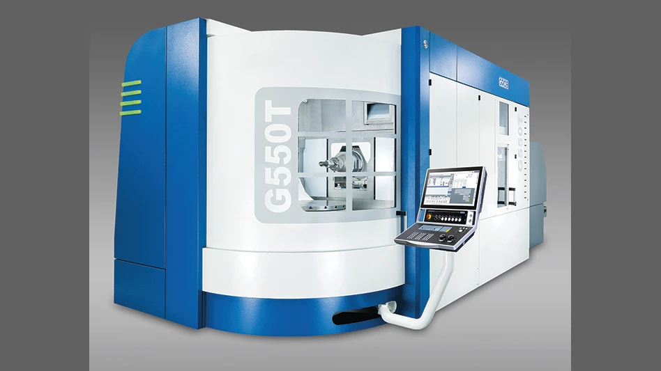 The GROB G550T offers maximum stability and excellent maintainability and provides the greatest possible positioning flexibility due to the axes large swivel range (230ﹾ in the A’-axis and 360ﹾ in the B’-axes). A horizontal spindle position permits the longest possible Z-travel path and optimum chip fall. The G550T features a unique arrangement of the three linear axes that minimizes the distance between the guides and the machining point (TCP), providing stability in part production. A tunnel concept permits the largest possible component (even in the case of with extremely long tools) to be swiveled and machined within the work area without collision. The three linear and two rotary axes allow 5-sided machining, 5-axis simultaneous interpolation, as well as GROB TRAORI-turning for precise cutting control. GROB machining centers are made in the U.S.A. at the GROB Systems full production facility in Ohio which has recently been expanded to 500,000ft2 and can include advanced automation solutions for dramatically increased productivity.