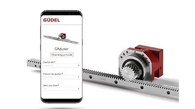 Güdel NGHP planetary gearboxes use a unique interface, together with a web application, to guarantee simple, precise, and error-free gear mesh adjustment for rack-and-pinion drive trains. With Güdel’s GAdjuster, setup and adjustment for the gearbox is fully defined for precise and repeatable results.
