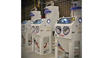 The rigid and tightly sealed blast systems are designed for heavy service with minimal maintenance. Lighting the blast enclosure are two, high-powered LED light panels to provide good part visibility through the large abrasion-protected safety glass viewing window.