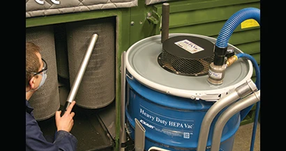 EXAIR’s new Heavy Duty HEPA Vac attaches to an ordinary 55 gallon open top drum to turn it into a powerful, HEPA quality, industrial vacuum cleaner. The Heavy Duty HEPA Vac is designed to move more material with less wear. In addition, this vacuum has been engineered to filter contaminants to HEPA requirements in dusty environments requiring frequent cleaning.
