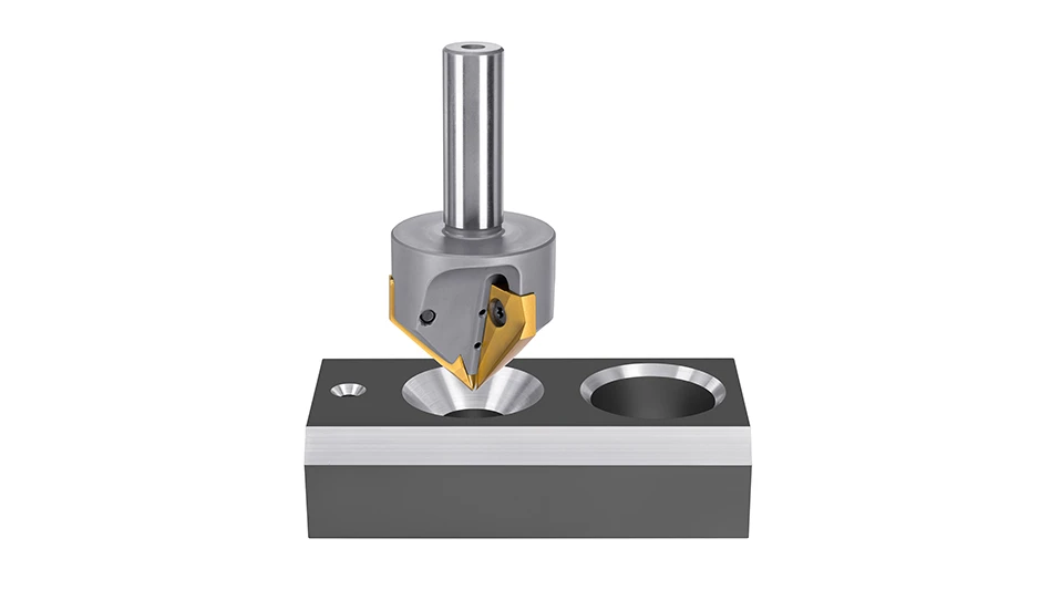 HEULE, a world leader in tool development, introduces GH-K tooling which provides precision chatter-free countersinks from 3mm – 45mm (0.118” to 1.771”) in a wide range of materials. Engineered with a positive geometry for high shear cutting action, it features carbide blades for machining cast iron, steel, aluminum, and non-ferrous materials, with optional HSS-Cobalt coated blades for steel and stainless-steel applications. Three-blades tools supplied for manual or CNC applications; single-bladed tools for all machining centers. Regardless of the number and composition, replaceable, re-grindable blades make GH-K an economical choice for many machining operations. All inserts are ground as a set at serialize to minimize deviation, so they cut at the same time, and minimize chatter, while enhancing surface finish. These unique tools are suitable for conventional milling of chamfers around the perimeter of larger holes or entire parts. GH-K Tooling available from stock in sizes from 3-45 mm (0.118 – 1.771 inches) at 60, 82, 90, and 100-degrees.