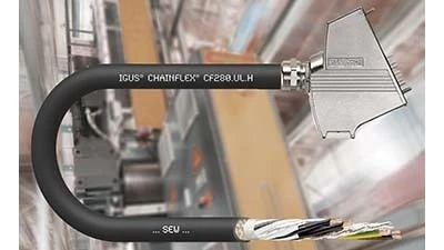 The new CF280.UL.H cable is a hybrid servo cable offered as an expansion to the chainflex line of cables for moving applications. The cable includes a 36-month service life guarantee. Cable can be ordered in raw cable lengths or as a connectorized readycable. The CF280.UL cable is compatible with motors and drives from over 39 manufacturers, including Siemens and Allen Bradley.