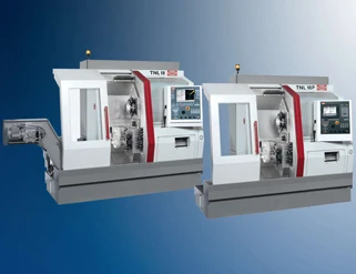 Simultaneous machining with multiple tools ensures high productivity levels by both machines; up to three tools may be used simultaneously on two spindles. The TNL18P production machine differs from the TNL18 variant in that the Y-axis motion of the upper turret is mapped by interpolation of the X/C/H axes, permitting contour milling, and reliable off-center, axially parallel drilling.