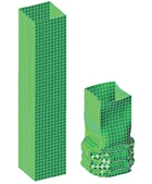 Meta-Elements can be selected, deleted, copied, pasted, translated and rotated in the same manner as solid modeling objects. This can speed up construction of meshes with repeated sections. Meta-Element colors in AMPSolid are used to group meshes together for the geometry selectors in AMPView for material property identification. The material interfaces are automatically created for FEA applications such as fluid-solid interaction.