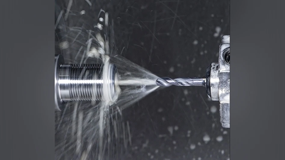 Unique solid carbide drills using a standard PASSCUT holder based on a simple design to prevent retraction during machining operations, enabling higher feed rates. Additionally, two side channels enable coolant flow directed to the cutting edges.