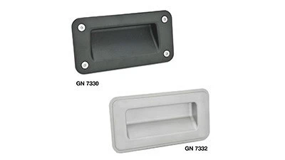In contrast to typical handles, GN 7332 & GN 7330 gripping trays with front or back mounting options are flush to the surface, making them appropriate for applications that require saving space. The gripping trays are used for the pulling or lifting of cabinet doors, door hatches, and entry doors.