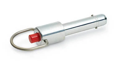 The RoHS compliant rapid release pins are used for quick assembly, connecting, and locking of various jig and fixture systems. This version with the swiveling pull ring can be used in confined spaces.