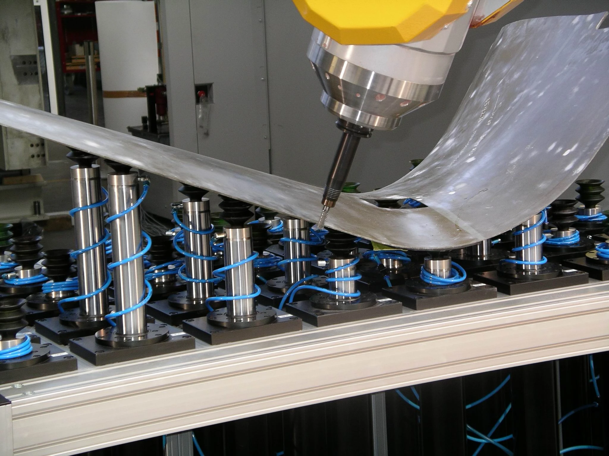 Whenever a workpiece changeover takes place, the universal device is adjusted to the new component by the repositioning of it's supporting and clamping elements. This makes it ideal for the manufacture of free-form components which often involves workpiece-configured jigs and fixtures that are arranged exclusively for a specific workpiece geometry. The UHF eliminates the need to replace the whole fixture whenever a new workpiece is positioned and clamped in place for processing. The compact configuration, modular concept, flexibility, high precision, high load capacity, simple maintenance and demonstrated reliability differentiate the UHF from competitors.