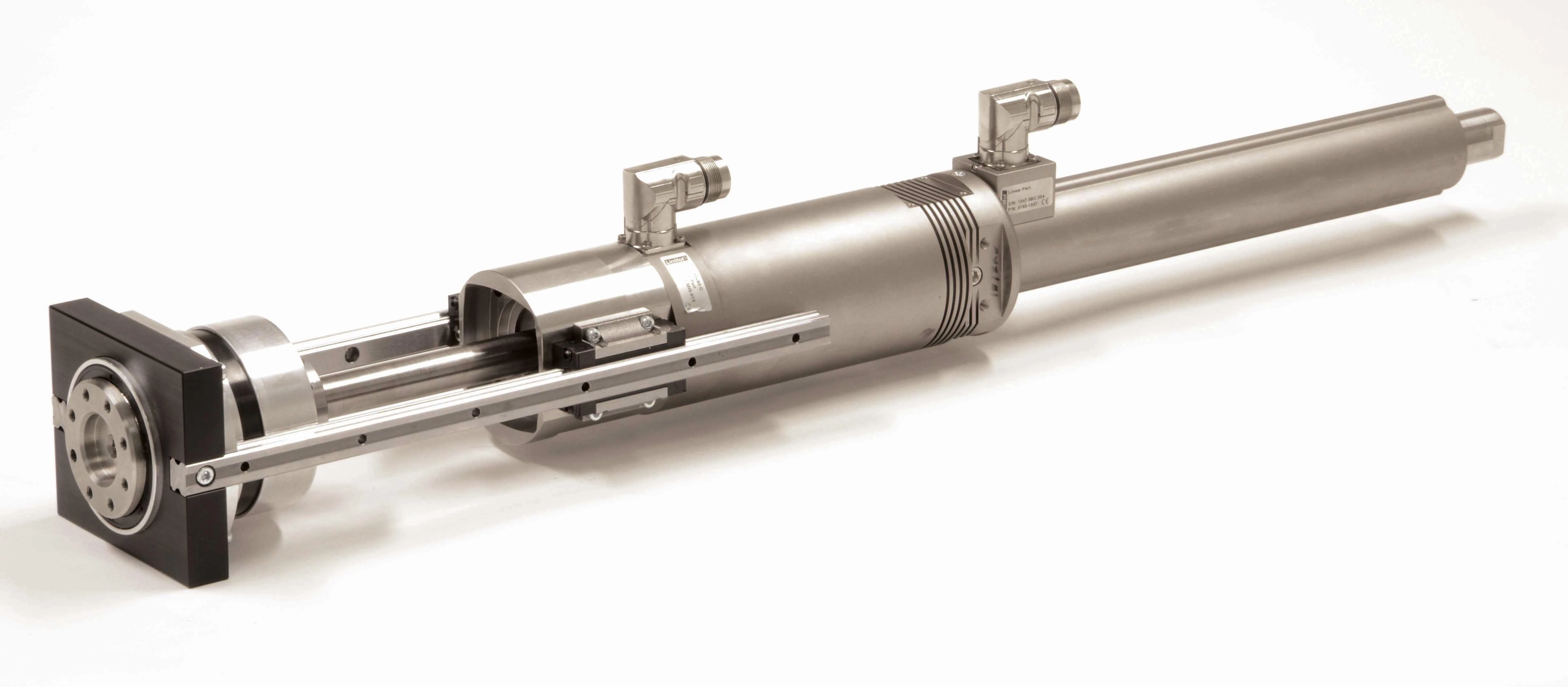 Based on the existing PR01 series, a linear rotary motor has been developed for applications with higher torque requirements, up to 80 Nm. The gearbox also allows precise and dynamic positioning, even for loads with high moment of inertia. A planetary gearset with three transmission ratios that can be specified as needed allow optimal tuning and adaptation to the moment of inertia. The linear and rotary motions can be actuated independently of each other or synchronized by a higher level NC controller, depending on the application. The integrated guide rails can be used to support transverse loads at the full stroke of 150 mm. Picking and placing loads outside of the axis of rotation is a classical application for the new linear rotary motor models. Dynamic and freely programmable motion of small dial tables with simultaneous rotational and vertical travel can be implemented easily using this new design element.