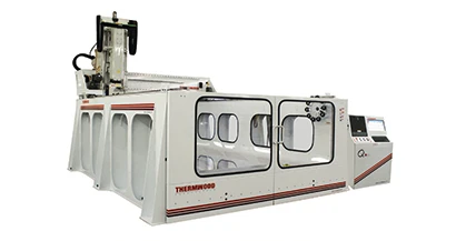 The Thermwood Model 77 series is a heavy duty 5-axis CNC router specifically developed for 3D machining of non-ferrous metals, composites, and other advanced materials. These applications range from machining patterns and molds/plugs to trimming and machining production products for the aerospace, aviation, boating, and military/defense industries.