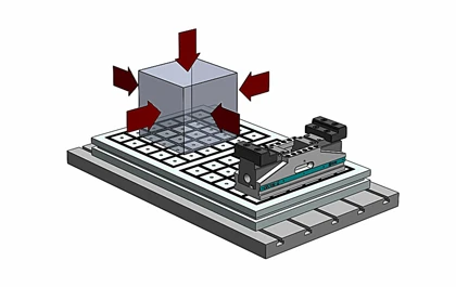 Carr Lane Roemheld's M-TECHS SP50 and SP70 is a versatile clamping system for machining centers that offers clamping in just 1 to 2 seconds, and 5-Axis workpiece machining in a single clamping operation. Suitable for rapid positioning and securing of workpieces of varying sizes, the system offers long service life at a low investment cost. Electrically energized only during the magnetizing and demagnetizing phases, the electro-permanent magnetic clamping plates with square pole technology are designed for maximum retaining force and the highest flexibility. Multiple platens can be controlled with a single control unit, independent of the power supply. For more information contact Carr Lane Roemheld Mfg. Co., 16345 Westwoods Business Park Dr., Ellisville, MO 63021, 1-800-827-2526, engr@clrh.com, or learn more at www.clrh.com.