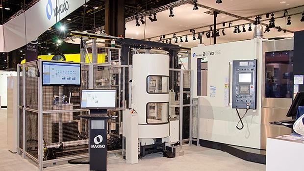 A new design configuration the Makino MMC2 automated pallet-handling system enables full compatibility with the company’s a61nx-5E 5-axis horizontal machining center (HMC). Together, these technologies offer a combination of processing speed and flexibility, giving aerospace manufacturers more control over their workflow and the ability to adapt quickly to customers’ just-in-time needs for complex, multi-dimension part applications.