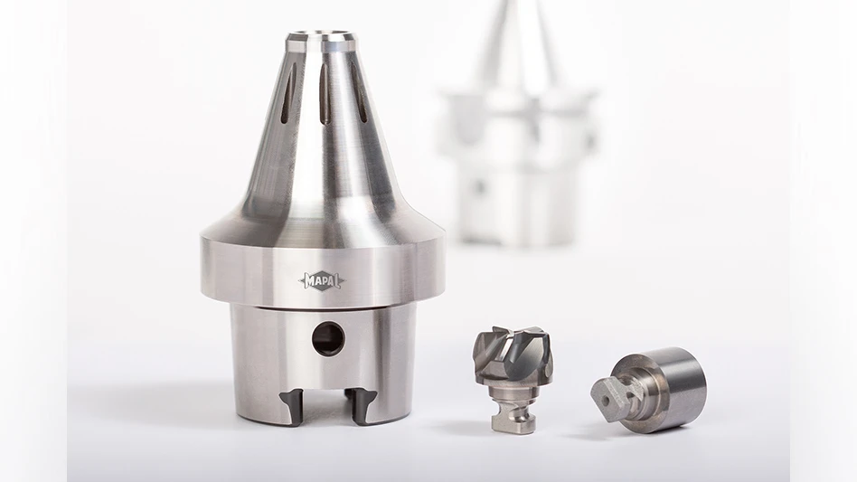 Together with the connection, MAPAL is also presenting a new tool holder design. The tool holder has a ring of cooling channel bores, which enables a much higher volume of cooling than conventional internal cooling can provide. By channeling the coolant directly to the area of the cutting edges, the tool life is extended and machining quality improved.