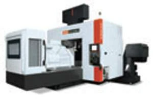 The new machining center is available with a 5-face machining option, which utilizes a spindle automatically indexable by 90 degrees, a special angle tool capable of automatic tool change (ATC) and an angle tool holder that can be indexed in four positions.