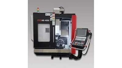 Offering high machining stability, the MB 450U has a robust bridge-type construction with thermal compensation including 1.771" (45mm) linear roller guideways in the X-, and Y-axis, 1.377" (35mm) in the Z-axis, and weighs 13,250 lb (6,000kg). Heidenhain linear scales in the X-Y-Z axes and Heidenhain rotary scales in the B & C axes offer high precision part production. Kinematic calibration features a spindle probe with a table center point calibration ball and kinematic software. A Laser Tool Measurement System detects tool wear, damage and breakage, reducing non-productive time and enabling automated operation.
