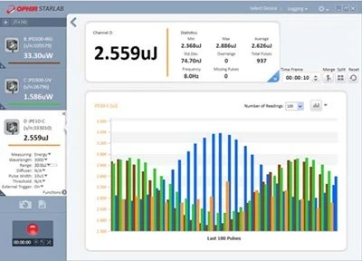 The Ophir StarLab 3.30 from MKS Instruments is a laser measurement software that turns personal computers (PCs) into multi-channel laser power/energy display stations. The software supports expanded network access via the Ophir EA-1 Ethernet Adapter or Quasar Bluetooth Adapter, user-defined pass/fail limits, and multiple pre-defined startup configurations.