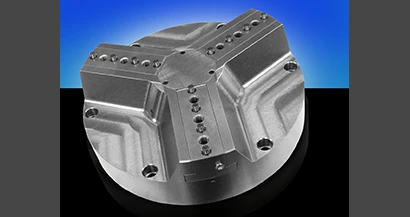 Officials for Northfield Precision Instrument Corp., a leader in the design and manufacture of precision workholding chucks, introduces their Model 1000, 10" diameter, 3-jaw air chuck. The standard chuck normally weighs about 60 lb. Northfield custom-designed this chuck for a customer by milling the face of the chuck, reducing its weight by 15 lb. This lighter weight helps maintain the accuracy of the machine.