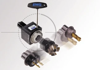 EWS-Vari Unicam is a universal modular toolholding system for quick, precise tool exchanges for most CNC turning centers. The patent-pending, single-point clamp requires a half turn to the left to release the worn tool, and a half turn to the right to secure a new one. Exchanges take seconds, with no sacrifice to precision machining or surface finish.