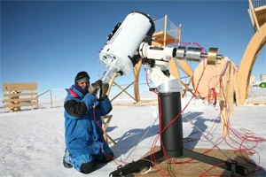 At the Laboratoire Universitaire d'Astrophysique de Nice (LUAN) in Antarctica, temperatures can drop to more than -100°F. The telescope is connected to an Astro-Physics 3600GTO mount for continuous tracking of astral bodies.