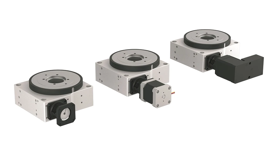 The lineup includes the High-Load Coaxial Rotary Table (21085-02), which is driven by worm gears and can support forces of up to 12,000N. These rotary tables feature cross-roller bearings capable of withstanding high forces and are available in three gear ratios: 20:1, 40:1, and 48:1. They can be configured with or without motors and controls, offering greater customization for specific applications.