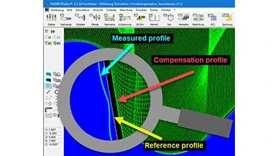 The form compensation software employs advanced filtering algorithms to create a smooth and precise compensation profile. The software always calculates the orientation of the grinding wheel and the path speed from the original profile, so that only the position of the contact point on the cutting edge is compensated – and not the orientation of the grinding wheel. This ensures that the surface quality of the tool is unaffected by the compensation.