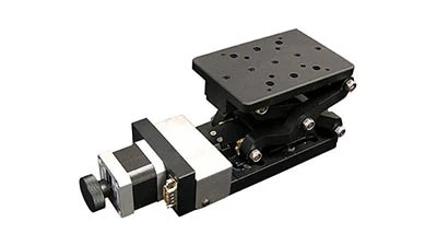 Van Nuys, California – The AT10-60-01, AT10-60-02, and the AT10-60-03 Motorized Elevator Stages have been released by Optimal Engineering Systems Inc. (OES). These compact, low profile elevator stages feature high stability 120mm x 80mm (4.724" x 3.149") tables and 60mm ± 2mm (2.362" ±0.078") of vertical travel with a load capacity of 5.0kg (11.0 lb). The scissor lift design combined with precision roller bearings and slide rails assures smooth motion and very high parallelism throughout the raising and lowering of the table.