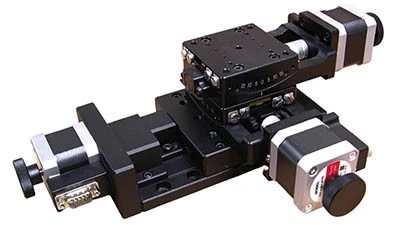 The XAB-050-XX-01 (pictured) features two-phase stepper motors with knobs for manual adjustments which can be replaced with optical encoders for position verification. The XAB-050-XX-02 is driven by three-phase brushless servo motors with quadrature incremental optical encoders for closed loop operation that offer the highest resolution, repeatability, and travel speeds.