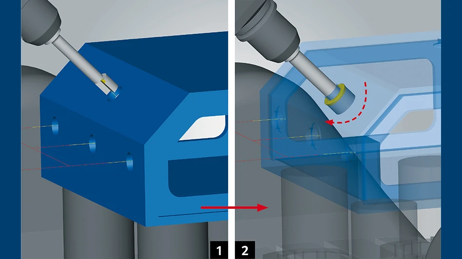 To ensure the highest level of safety while providing reliable programming when back boring, a new 2.5D Back Boring machining strategy enables back boring tasks to be programmed on machines with different kinematics conveniently and easily. Toolholders and inserts, as well as monobloc tools, are displayed one-to-one in the virtual machine and checked for collisions. Now programming the controller for countersinking, deburring, and milling tools on the once inaccessible back side of a hole can be done with ease.